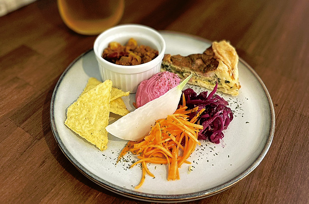 フード:オードブルプレート(ほうれん草とベーコンのキッシュ・チリコンカン・サラダ等)またはバスク風チーズケーキ