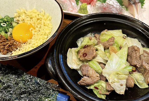フード:博多鉄板焼き、お皿で。or 当店名物納豆革命